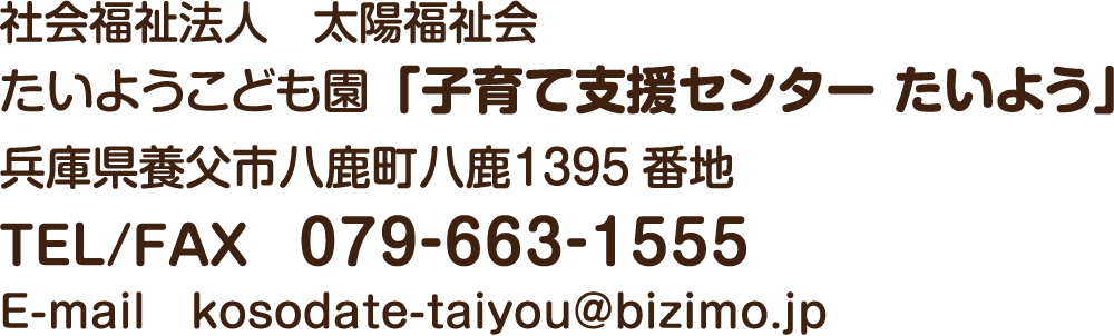 また、八鹿地域等を対象とした「おひさま広場」をたいようこども園乳児センターと子育て支援センターたいようで様々な活動を行っています。